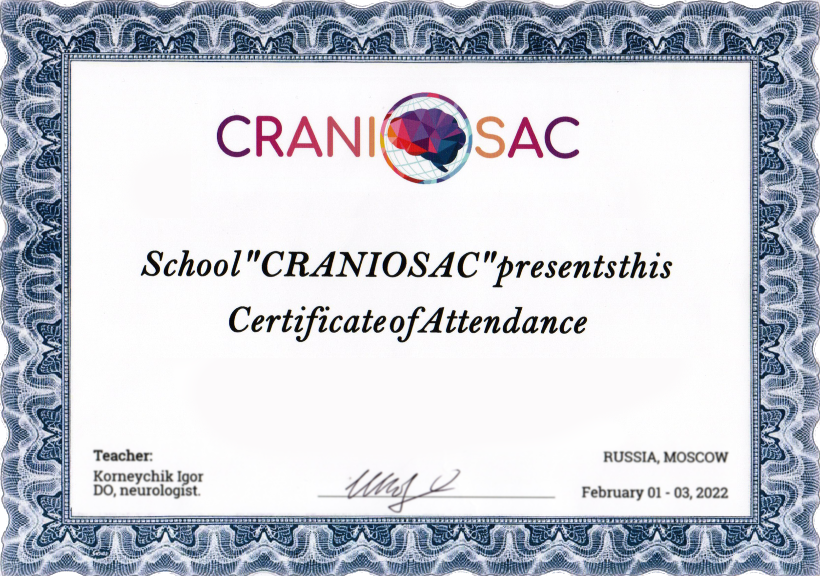 По итогу обучения слушатели получают сертификат от школы Craniosac